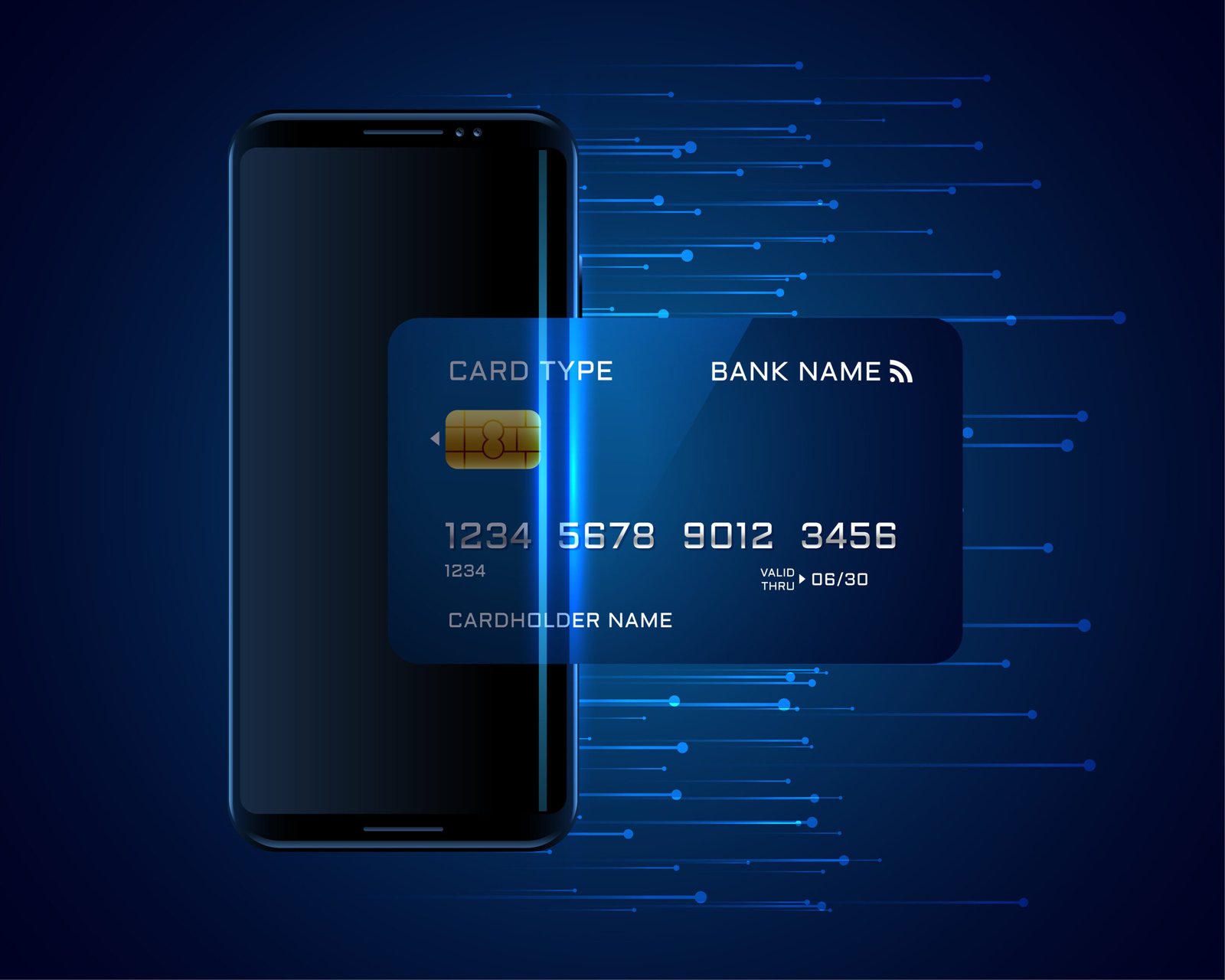 credit card going inside mobile digital transaction concept